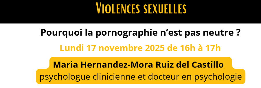 Conférence sur les violences sexuelles notamment sur les impacts de la pornographie.