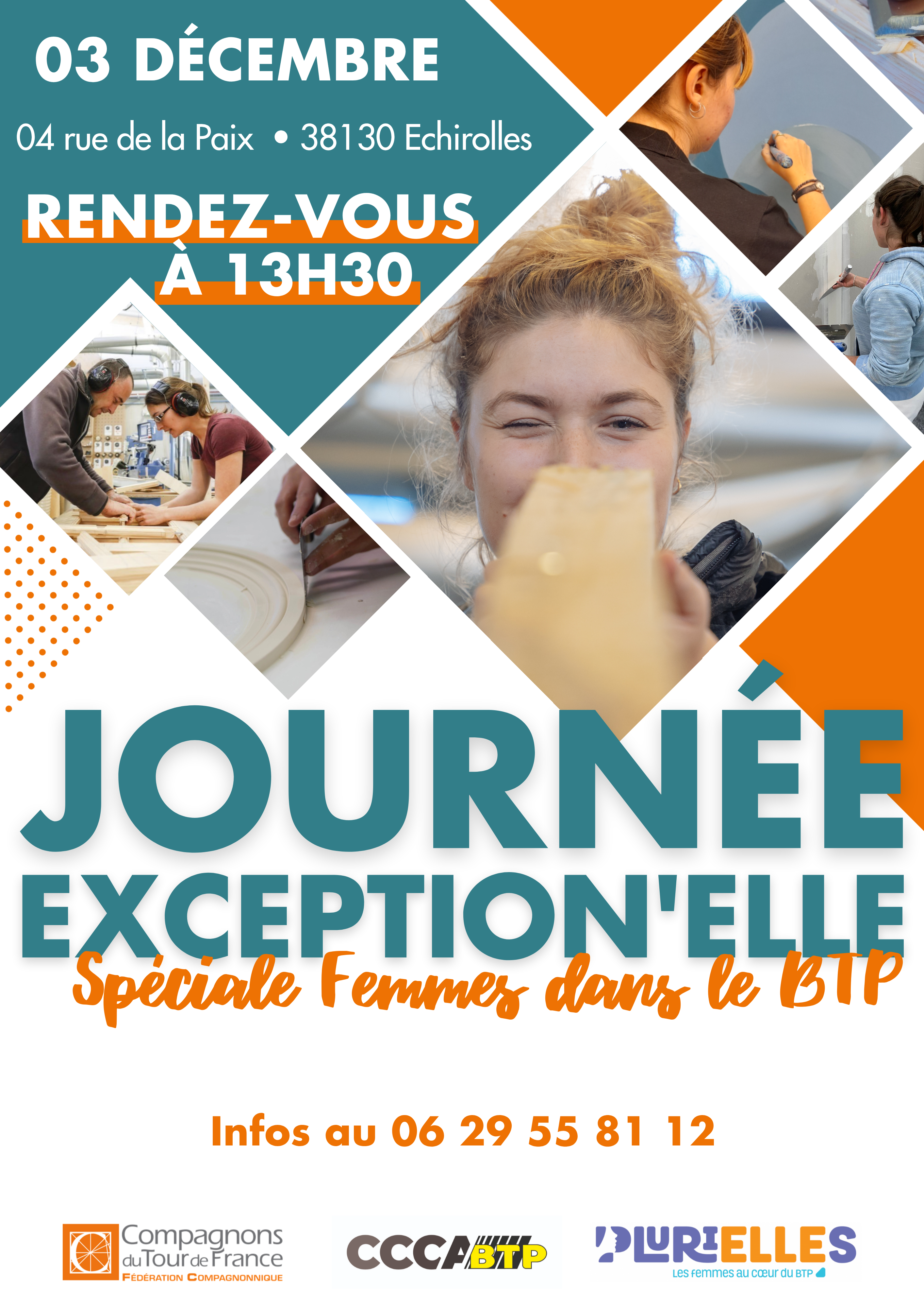 Nouveaux rendez-vous "Exception'ELLEs"! Les équipes des Compagnons du Tour de France Echirolles vous proposent dans la continuité du mois de l'immersion professionnelle, un dernier rendez-vous de l'année avec les métiers du BTP.