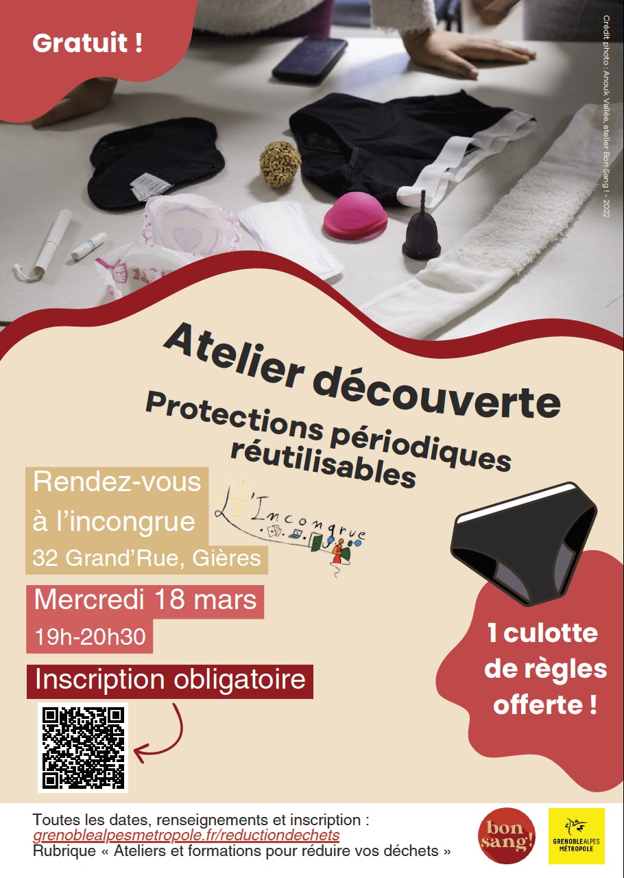 La Métropole confie à Bon sang! l'animation d'ateliers sur les protections périodiques réutilisables, pour élargir ses choix tout en réduisant ses déchets!