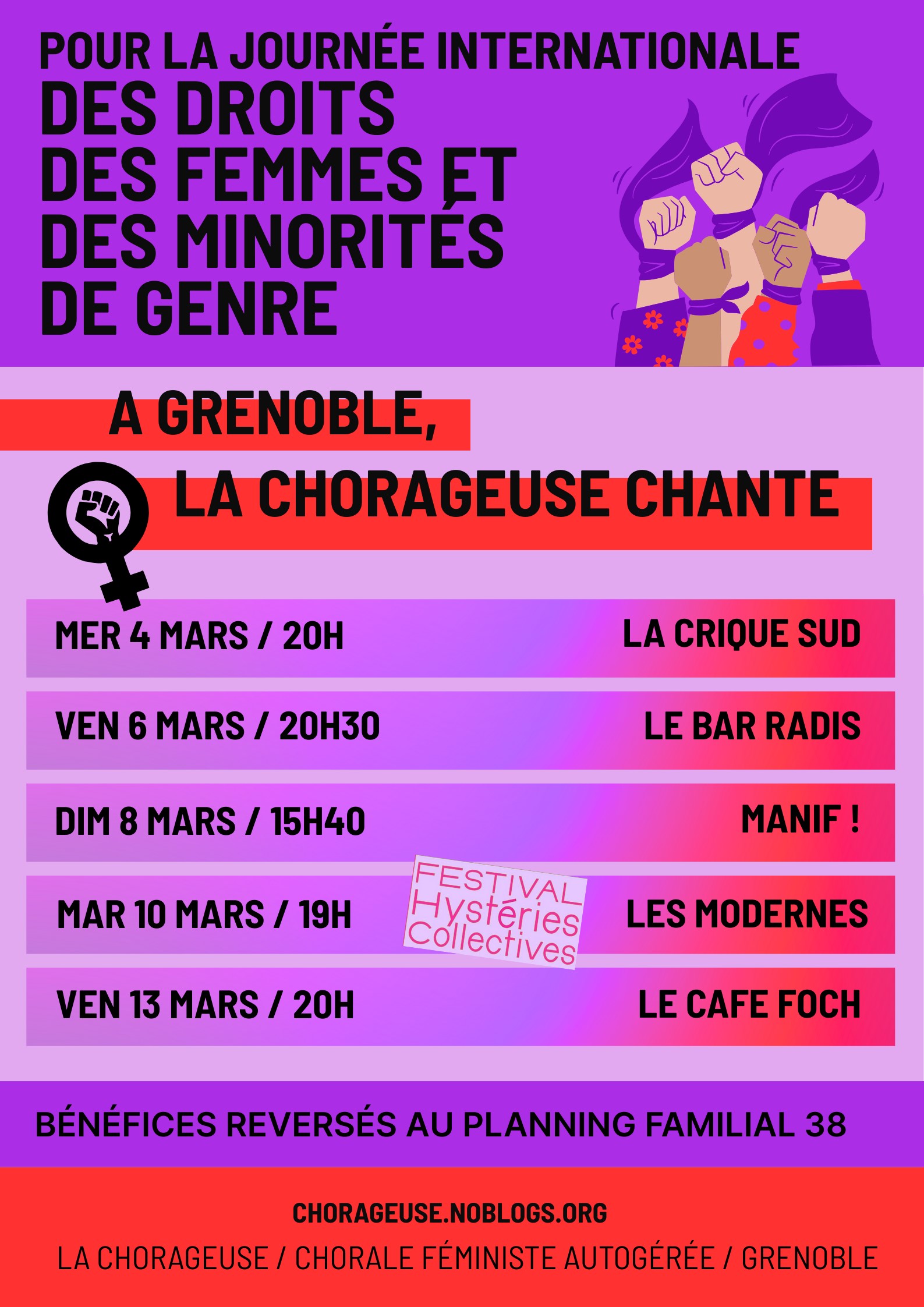 La Chorageuse, chorale féministe autogérée, sera à Grenoble aux dates suivantes :